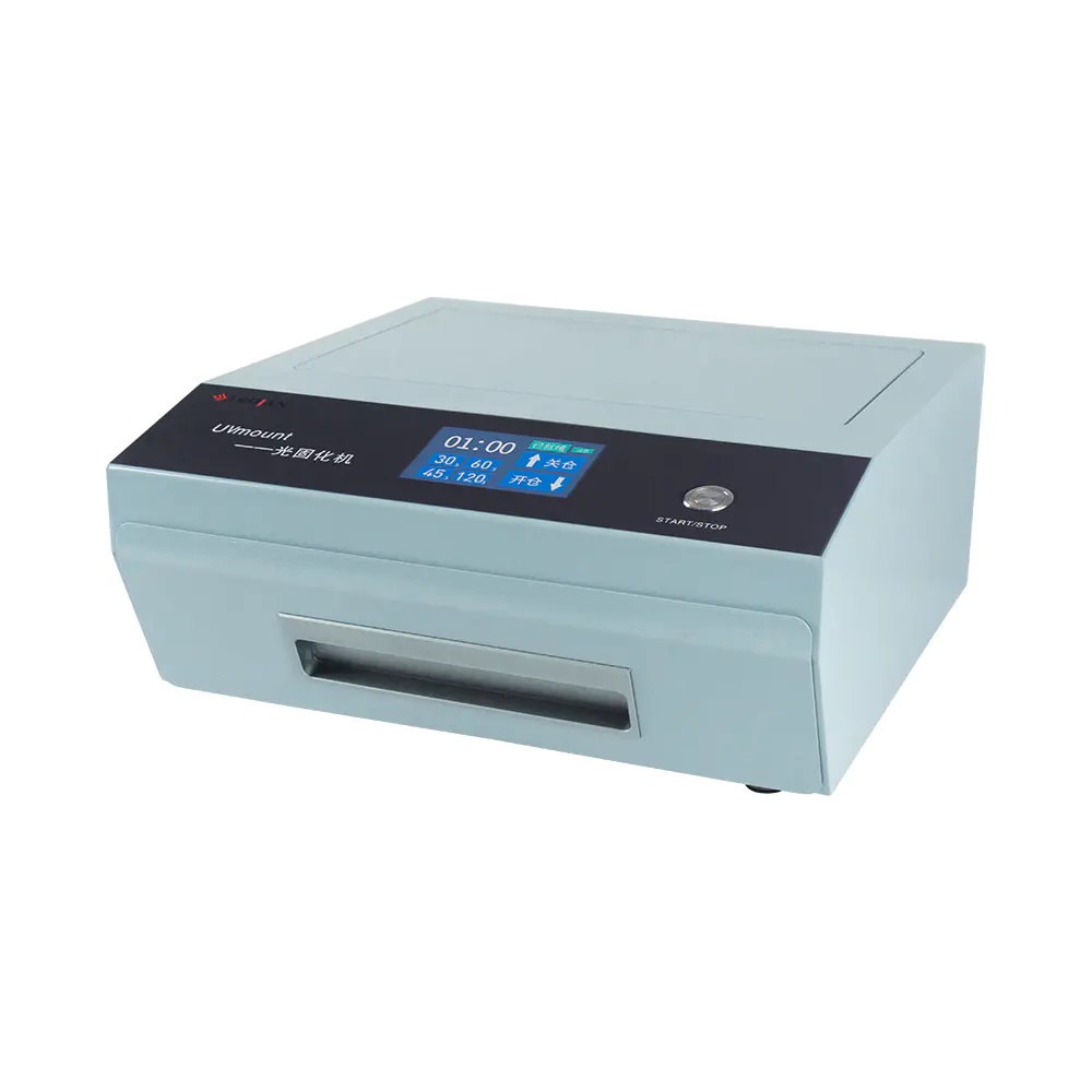 zariadenie na prípravu vzoriek na montáž za studena, ktorý využíva UV svetlo na rýchle vytvrdzovanie živíc. Nalejte živicu do priehľadnej formy, vložte ju do UVmount a trvá len 60 sekúnd, kým získate úplne vytvrdenú vzorku. Príprava vzorky je rýchla s málo vzduchových bublín, čo môže splniť požiadavku na kvalitnú prípravu vzorky.