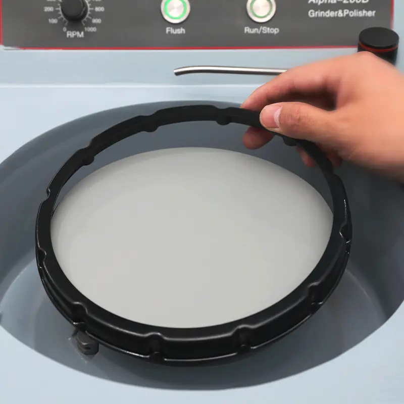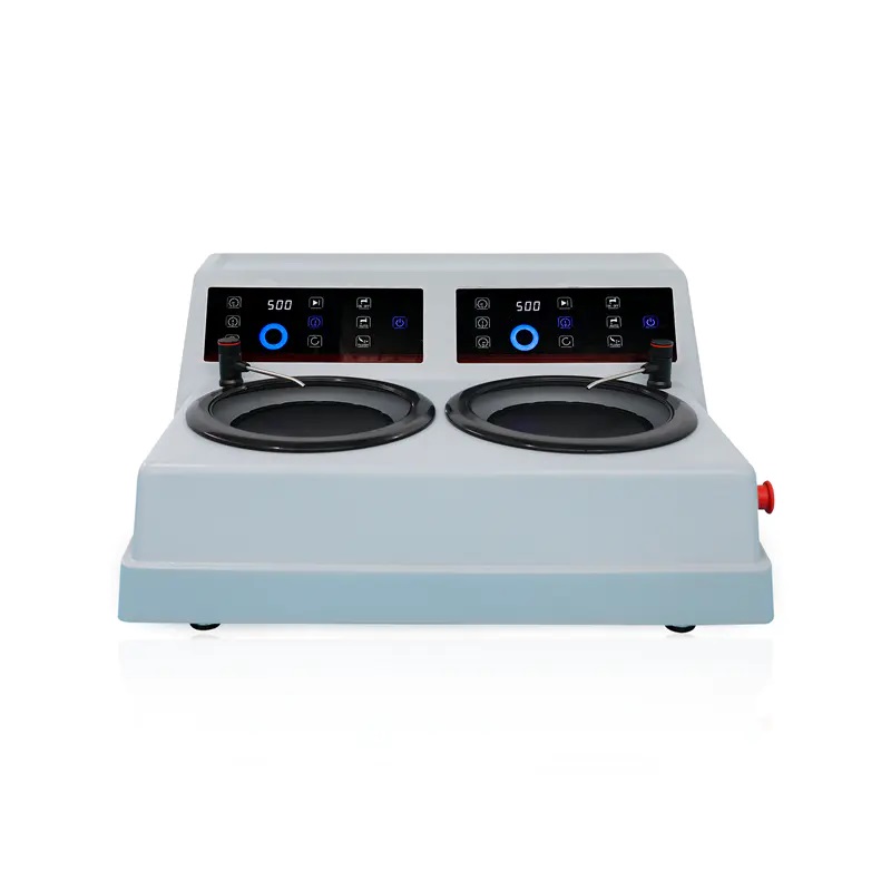 Alpha-202 je dvojitý kotúč s dvoma samostatnými ovládacími panelmi, brúska a leštička. Obsahuje tri programovateľné prednastavené rýchlosti pre rýchle zmeny rýchlosti. Tiež s tryskou na manuálne/automatické preplachovanie nečistôt. Vhodné na brúsenie a leštenie rôznych metalografických vzoriek. Je široko používaný v laboratóriách materiálovej analýzy / fyzikálnej a chemickej analýzy každého podniku a výskumných inštitúcií.